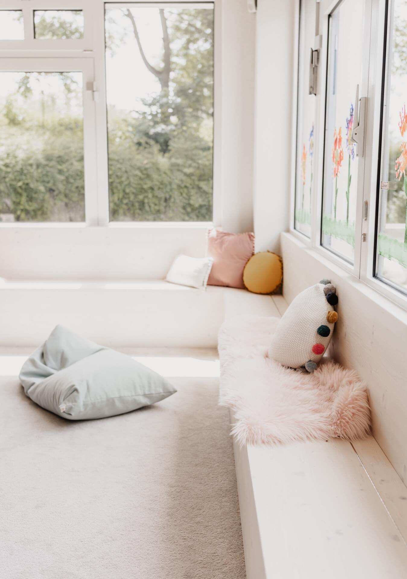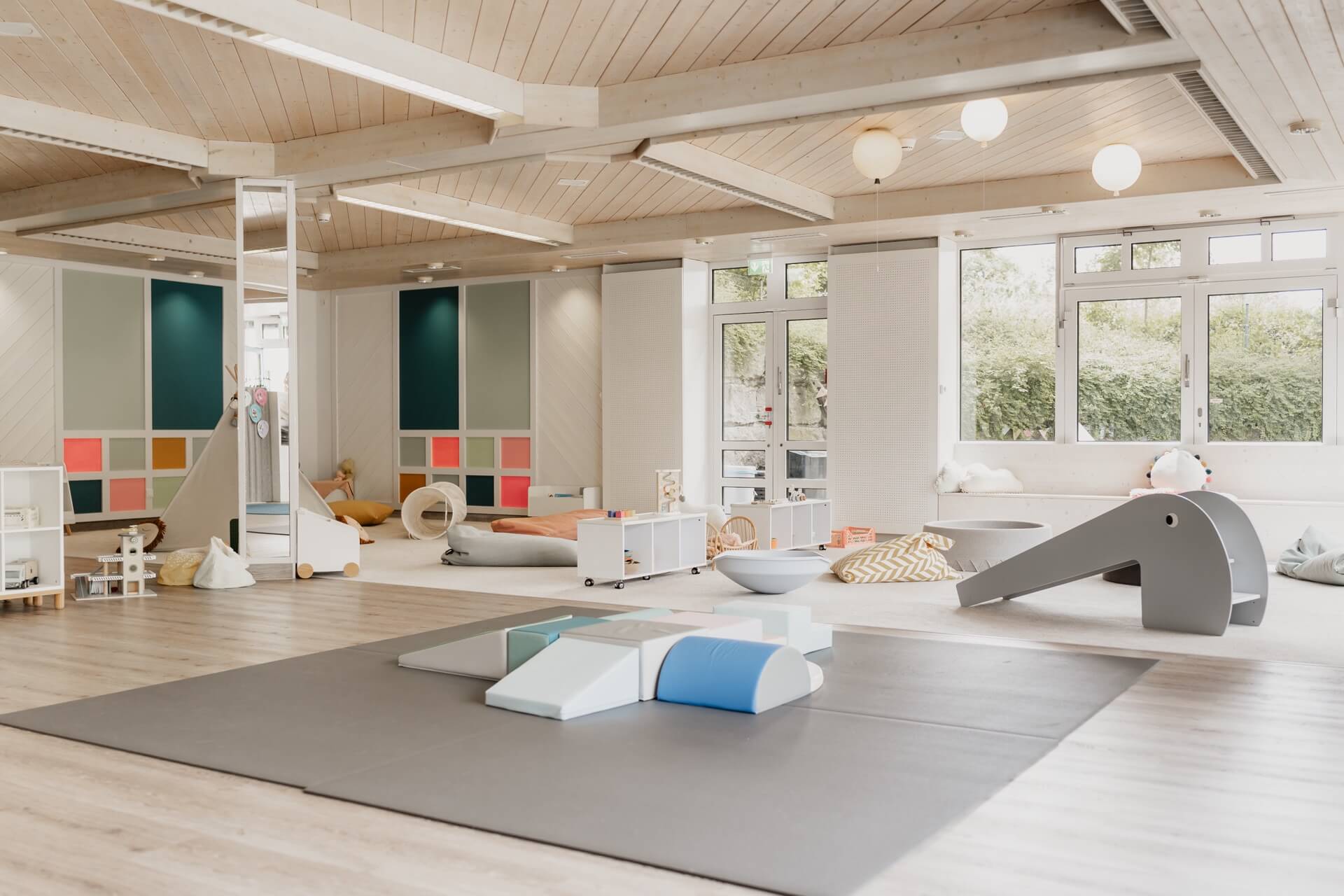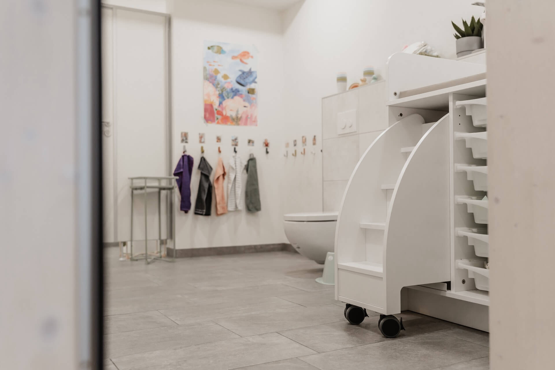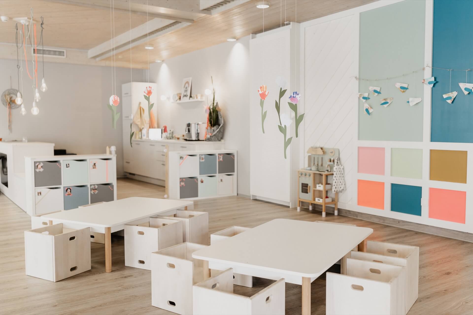 Zusätzlich gibt es einen separaten Schlafbereich, in dem die Kleinsten ungestört ihre Ruhepausen genießen können. Mit der durchdachten, altersgerechten Ausstattung schaffen die Räumlichkeiten unserer Mini-Kita eine geborgene Atmosphäre, in der Kinder spielerisch lernen und sich entfalten können.