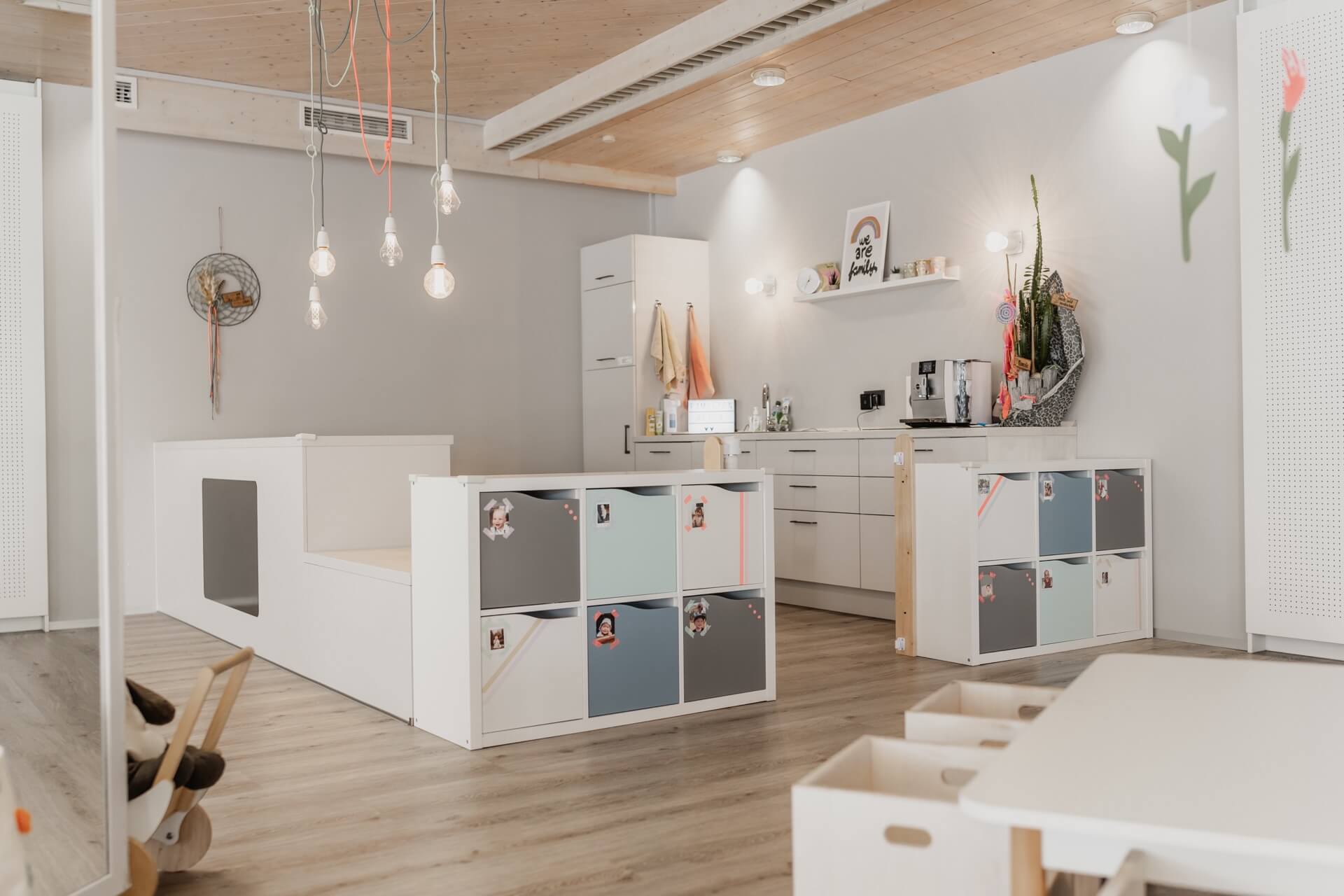 Die Räumlichkeiten im FamilienReich sind liebevoll gestaltet und bieten Kindern eine einladende Umgebung zum Wohlfühlen und Entdecken. Kindgerechtes Mobiliar und Spielmaterialien fördern die Kreativität und Neugier der Kinder. Ein großer Spielbereich bietet Platz für Bewegung und gemeinsame Aktivitäten, während gemütliche Ecken zum Ausruhen und Lesen einladen.